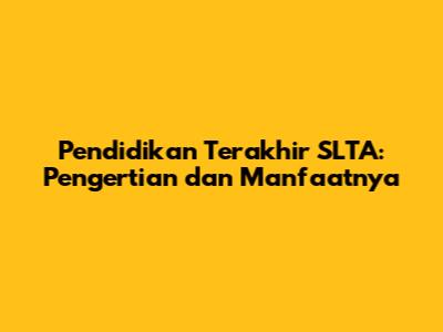 Apa Itu Pendidikan Terakhir SLTA?