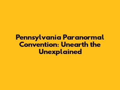 Pennsylvania Paranormal Convention: Unearth The Unexplained