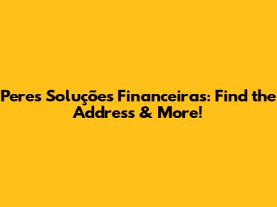 Peres Soluções Financeiras: Find The Address & More!
