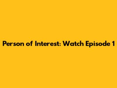 Person Of Interest: Watch Episode 1