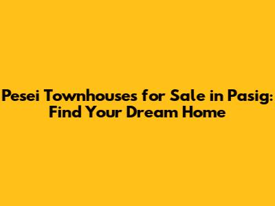 Pesei Townhouses For Sale In Pasig: Your Dream Home