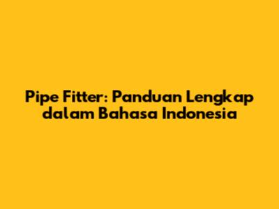 Pipe Fitter: Panduan Lengkap Dalam Bahasa Indonesia