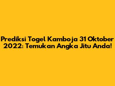 Hey, para pecinta togel! Kalian lagi cari bocoran angka jitu buat pasaran Kamboja tanggal 31 Oktober 2022? Pas banget, nih! Di sini kita bakal bedah tuntas prediksi togel Kamboja yang akurat biar peluang JP kalian makin besar. Jangan sampai ketinggalan info penting ini, guys!