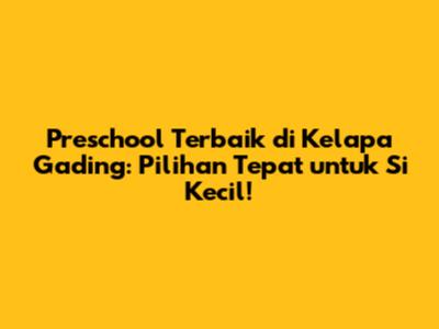 Berikut ini adalah beberapa rekomendasi sekolah preschool di Kelapa Gading yang bisa menjadi pertimbangan Anda: