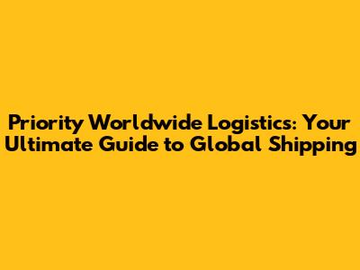 Priority Worldwide Logistics: Your Ultimate Guide To Global Shipping