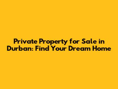 Private Property For Sale In Durban: Find Your Dream Home