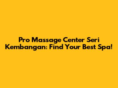 Pro Massage Center Seri Kembangan: Find Your Best Spa!