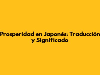 Prosperidad En Japonés: Traducción Y Significado