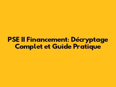 PSE II Financement: Décryptage Complet Et Guide Pratique
