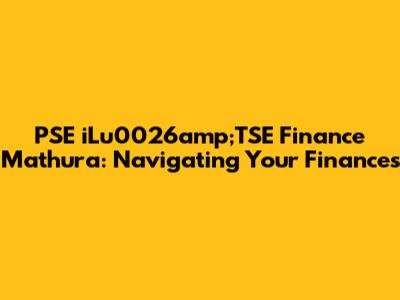 PSE ILu0026amp;TSE Finance Mathura: Navigating Your Finances