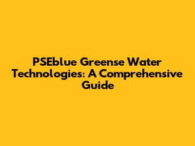 PSEblue Greense Water Technologies: A Comprehensive Guide