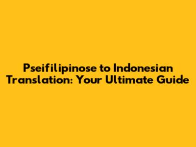 Pseifilipinose To Indonesian Translation: A Comprehensive Guide