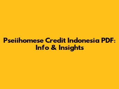 Pseiihomese Credit Indonesia PDF: Info & Insights