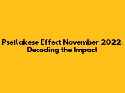 Pseilakese Effect November 2022: Decoding The Impact