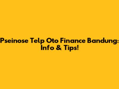 Pseinose Telp Oto Finance Bandung: Info & Tips!