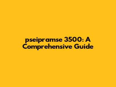 Pseipramse 3500: A Comprehensive Guide