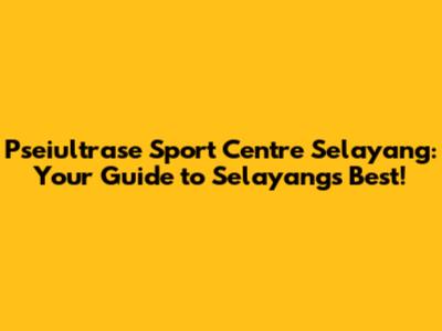 Pseiultrase Sport Centre: Your Guide To Selayang's Best!