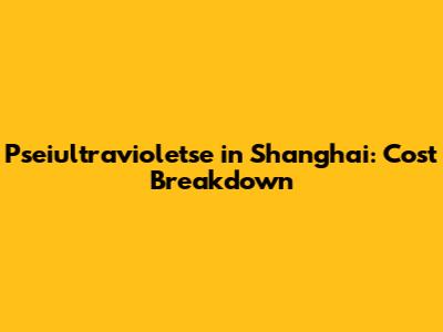 Pseiultravioletse In Shanghai: Cost Breakdown
