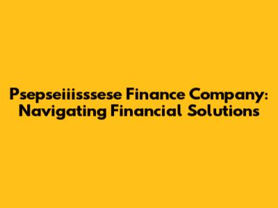 Psepseiiisssese Finance Company: Navigating Financial Solutions
