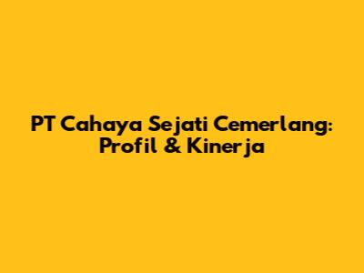 PT Cahaya Sejati Cemerlang: Profil & Kinerja