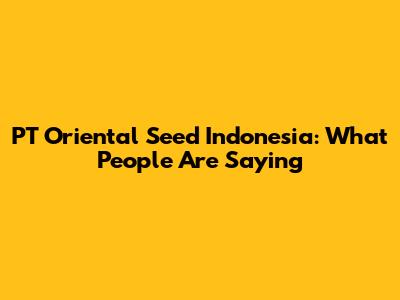 PT Oriental Seed Indonesia: What People Are Saying