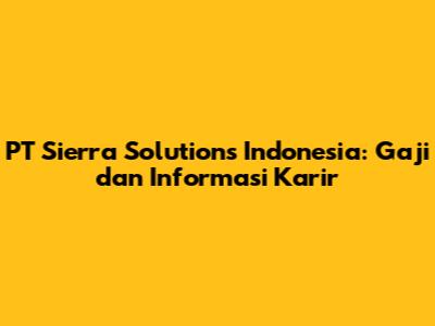 PT Sierra Solutions Indonesia: Gaji Dan Informasi Karir