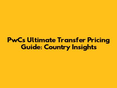 PwC's Ultimate Transfer Pricing Guide: Country Insights