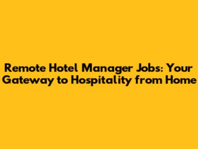 Hey there, hospitality enthusiasts! Ever dreamt of managing a hotel, but the thought of being tied to a physical location doesn't quite fit your lifestyle? Well, guess what? Remote hotel manager jobs are becoming increasingly popular, opening doors to a world of opportunities from the comfort of your own home. In this article, we'll dive deep into everything you need to know about landing one of these coveted positions, from the skills required to the best places to find them, and even a peek into what a typical day might look like. Let's get started, shall we?