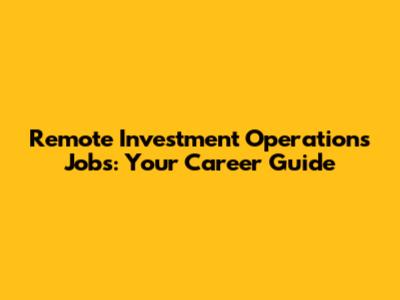 Remote Investment Operations Jobs: Your Career Guide
