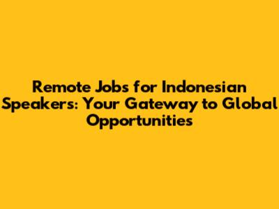 Remote Jobs For Indonesian Speakers: A Comprehensive Guide