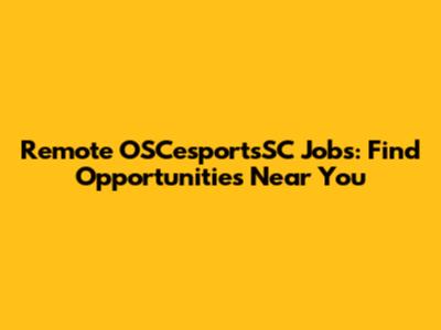 Remote OSCesportsSC Jobs: Find Opportunities Near You