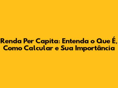 O Que é Renda Per Capita?