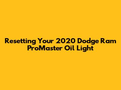 So there you have it! Resetting the oil life indicator on your 2020 Dodge Ram ProMaster is a simple task that can help you keep your vehicle's maintenance schedule on track. Remember to follow the steps carefully, and if you encounter any problems, don't hesitate to consult your owner's manual or seek professional assistance. And most importantly, don't forget the importance of regular oil changes and other maintenance tasks to keep your ProMaster running smoothly for years to come. Happy driving, guys!
