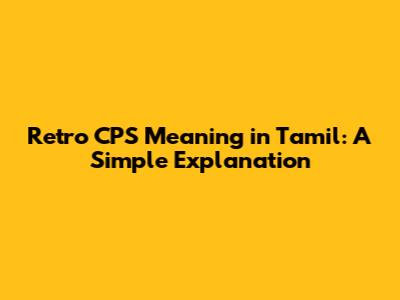 Retro CPS Meaning In Tamil: A Simple Explanation