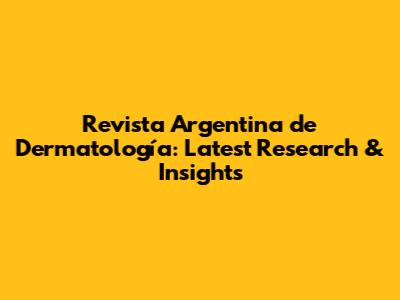 Revista Argentina De Dermatología: Latest Research & Insights