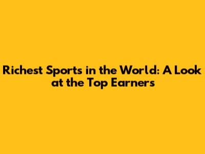 Richest Sports In The World: A Look At The Top Earners