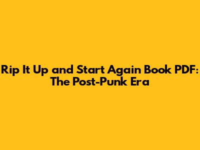 Rip It Up And Start Again Book PDF: The Post-Punk Era