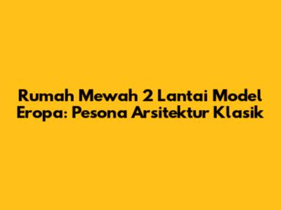 Rumah mewah 2 lantai model Eropa adalah impian bagi banyak orang. Dengan desain yang memukau, interior yang elegan, serta gaya hidup yang berkualitas, rumah bergaya Eropa menawarkan pengalaman tinggal yang tak tertandingi. Dengan perencanaan yang matang, pemilihan material yang tepat, serta perhatian terhadap detail, kalian bisa mewujudkan hunian impian kalian. So, guys, jangan ragu untuk mewujudkan impian kalian memiliki rumah Eropa. Mulailah dengan merencanakan desain, mencari kontraktor yang terpercaya, dan mempersiapkan anggaran yang sesuai. Dengan begitu, kalian akan selangkah lebih dekat untuk memiliki rumah impian yang mewah dan berkelas.
