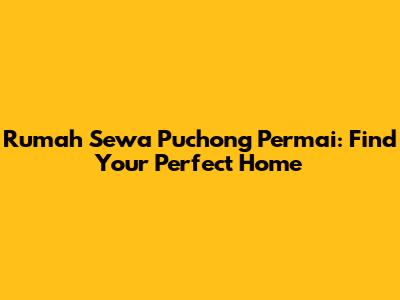 Rumah Sewa Puchong Permai: Find Your Perfect Home