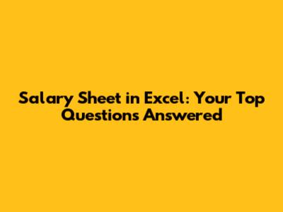Salary Sheet In Excel: Your Top Questions Answered