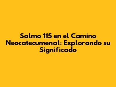 Hey guys, let's dive into something super interesting – Salmo 115, especially how it's used and understood within the Camino Neocatecumenal. This psalm is a total powerhouse of faith, and it's got a special place in the hearts of those walking this unique Christian journey. We're going to break down the psalm, look at its key messages, and see how it fits into the whole Neocatechumenal experience. Get ready for some insights that might just change the way you see things!