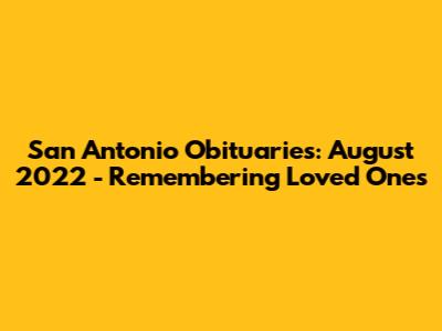 The San Antonio obituaries August 2022 serve as a poignant reminder of the lives that have touched our community. Remembering these individuals allows us to honor their legacies, celebrate their achievements, and offer support to those who are grieving. Obituaries play a crucial role in the grieving process, providing a space for remembrance and connection. By utilizing the various resources available, we can ensure that the memories of our loved ones are kept alive for generations to come. In closing, let us take a moment to reflect on the lives of those who passed away in August 2022, and to appreciate the diverse experiences and stories that make up the rich tapestry of San Antonio.