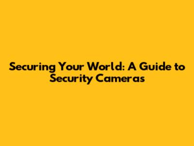 Securing Your World: A Guide To Security Cameras