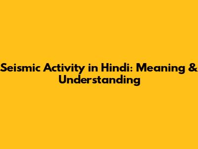 Seismic Activity In Hindi: Meaning & Understanding
