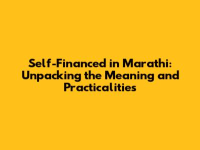 Self-Financed In Marathi: Meaning & How It Works