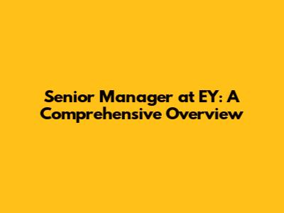 Senior Manager At EY: A Comprehensive Overview