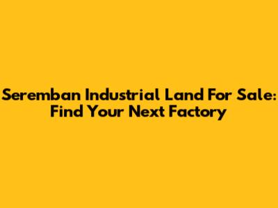 Seremban Industrial Land For Sale: Find Your Next Factory