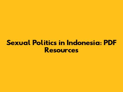 Sexual Politics In Indonesia: PDF Resources