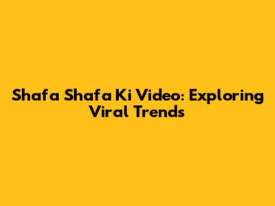 Shafa Shafa Ki Video: Exploring Viral Trends