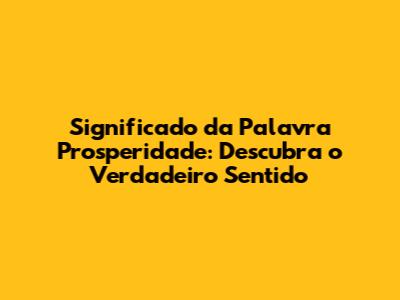 Significado Da Palavra Prosperidade: Descubra O Verdadeiro Sentido